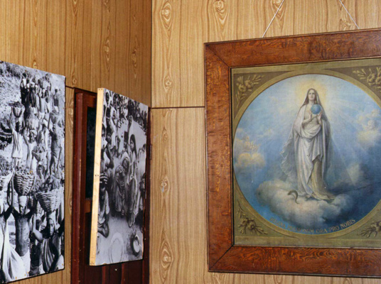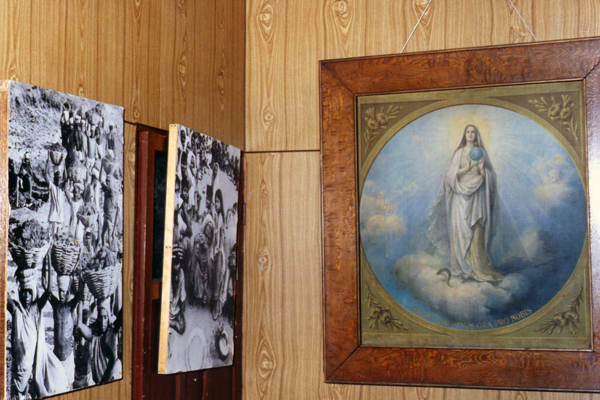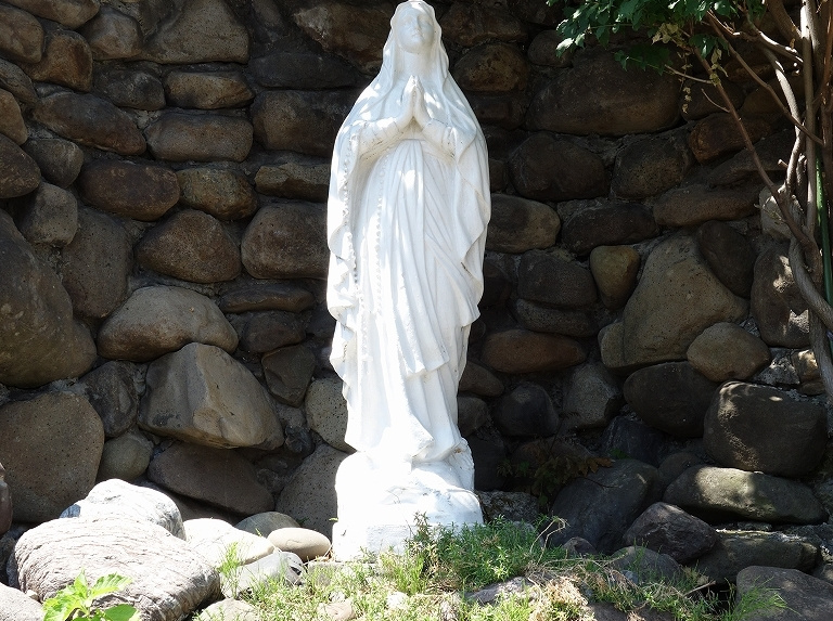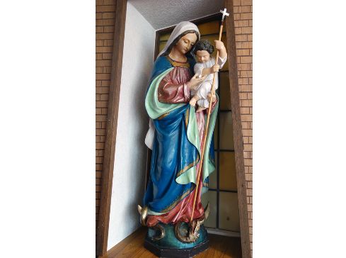 教会とスカウトハウスの通路に掲げられていたマリア様の絵
